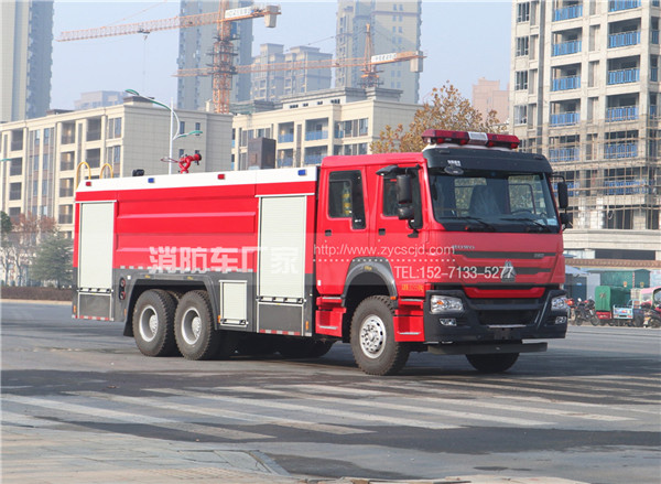 重汽16噸水罐消防車,在重汽原裝二類底盤上改裝而成,載液量16立方,配置CB10/60型消防泵,PS50型消防炮,隨車配備常用消防器材,具有動力強勁,機動性好,操作方便,射程遠的特點,適用于消防隊,專職隊,社區、街道、村鎮、工業園、校園、企業,風景區,博物館等場所。