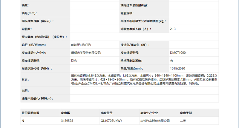 國六五十鈴2.5噸泡沫消防車公示內容
