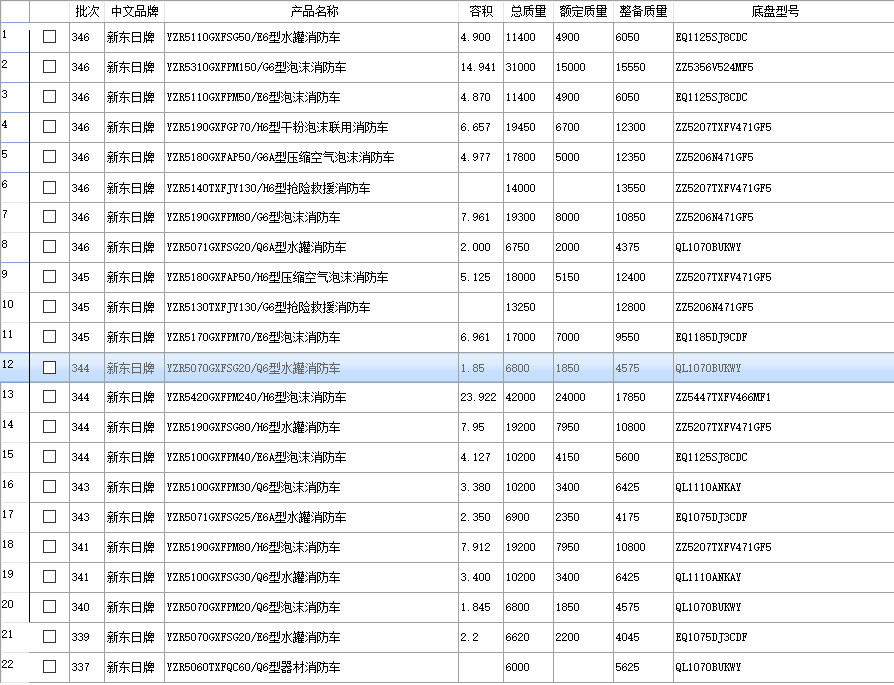 • 隨著工信部汽車公告346批次的更新,我公司目前下發了22款消防車車型,涵蓋了大中小多種型號消防車車型,不僅僅有常規的水罐消防車,泡沫消防車,還有特種的搶險救援消防車、干粉泡沫聯用消防車,壓縮空氣泡沫消防車等車型。