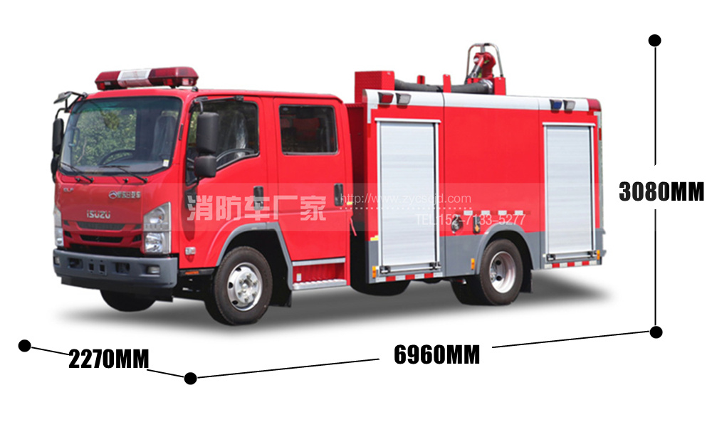 國五五十鈴700P3.5噸水罐消防車,在五十鈴700P原裝二類底盤上改裝而成,載液量3.5立方,配置CB10/30型消防泵,PS30型消防炮,隨車配備常用消防器材,具有動力強勁,機動性好,操作方便,射程遠的特點,適用于消防隊,專職隊,社區、街道、村鎮、工業園、校園、企業,風景區,博物館等場所。
